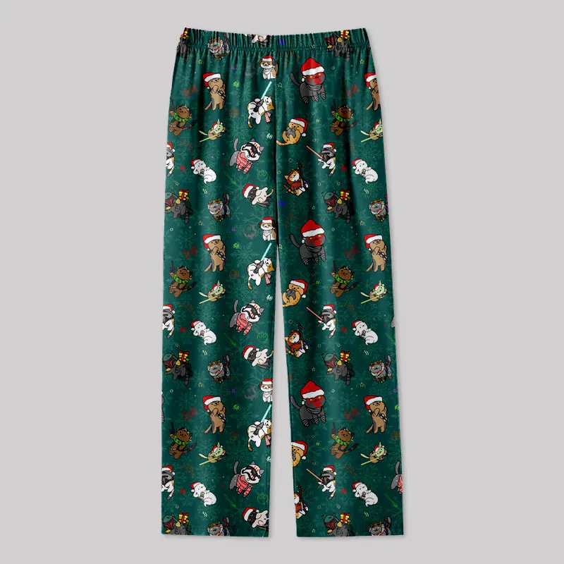 Christmas Light Sword Cat Geek Loungewear Pants