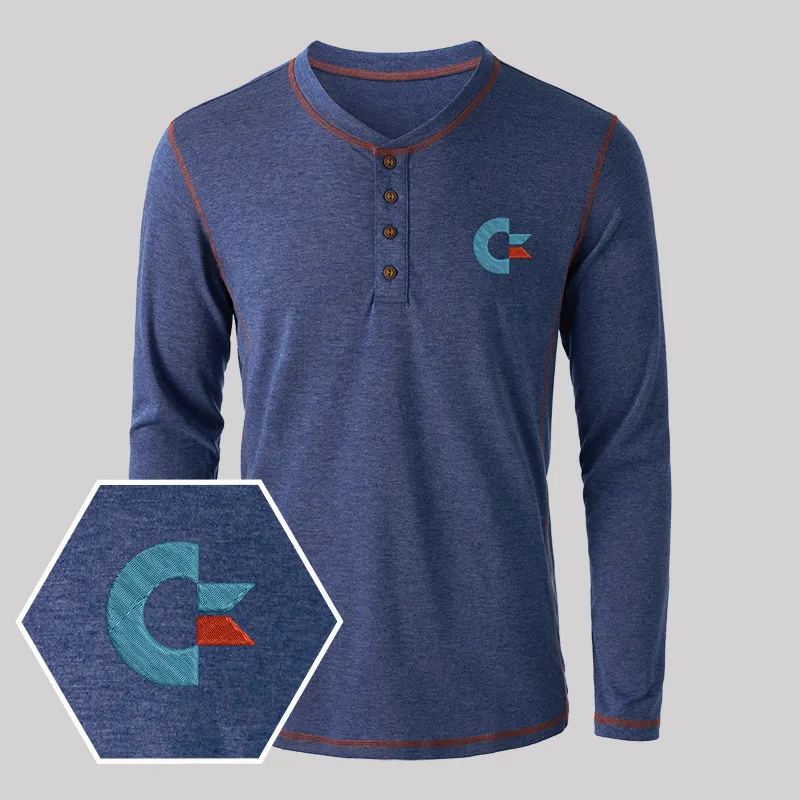 Commodore Geek Embroidered Long Sleeve Henley Shirts