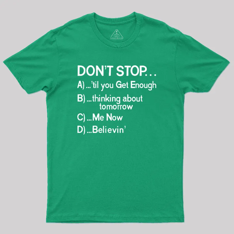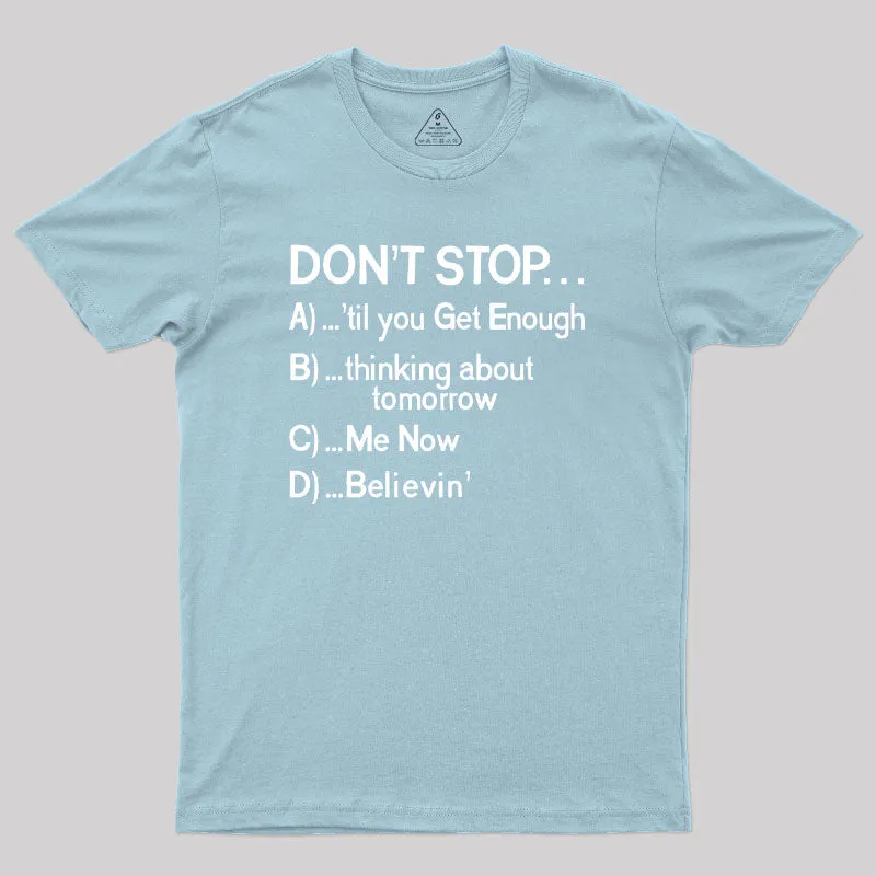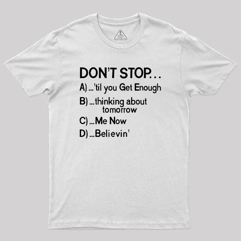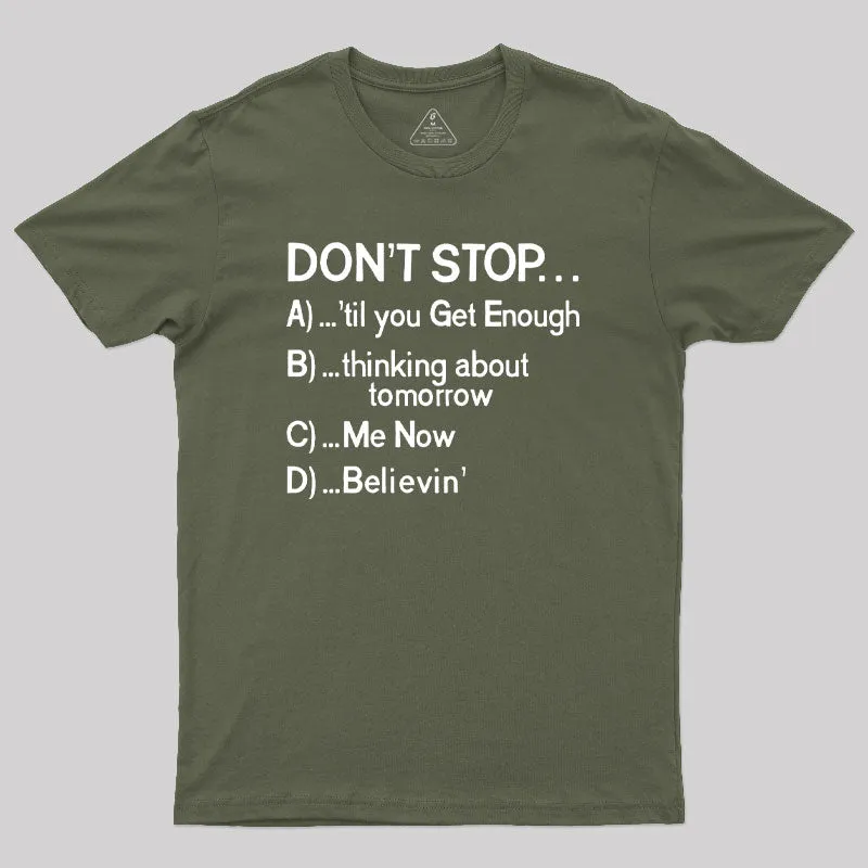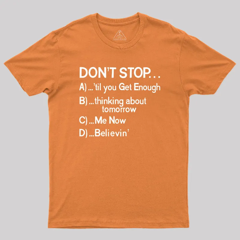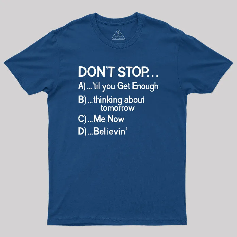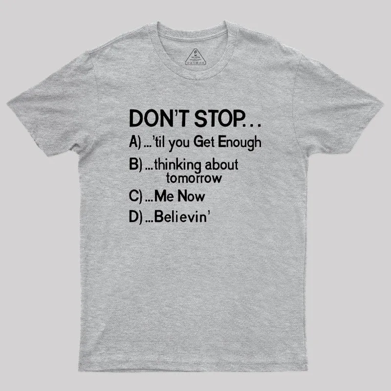 Don't Stop 80s Songs Multiple Choice Geek T-Shirt
