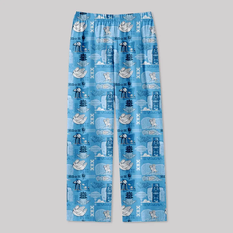 Hawaiian Traditional Tiki Blue Geek Loungewear Pants