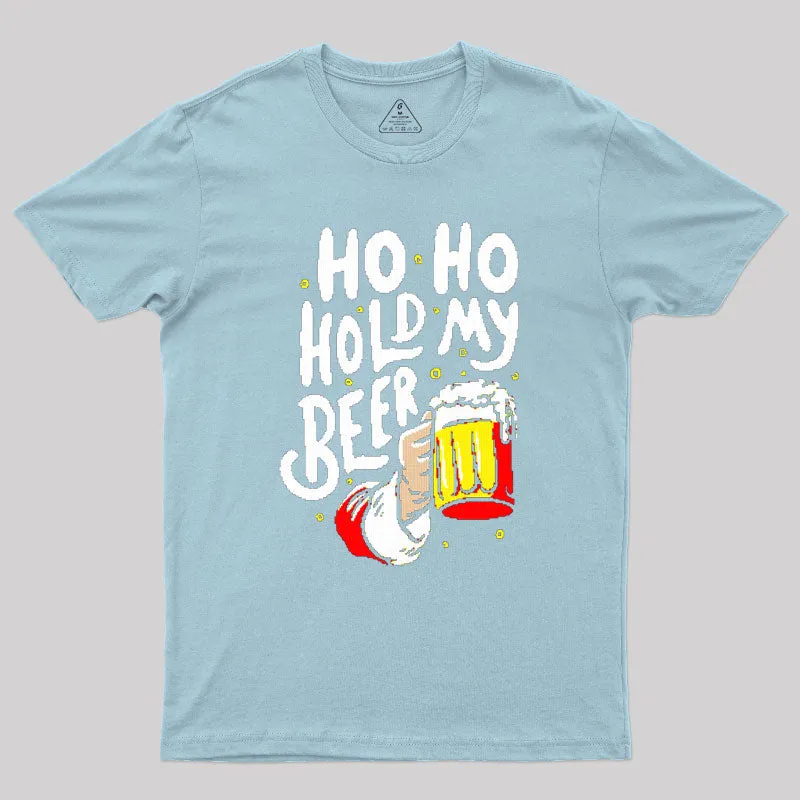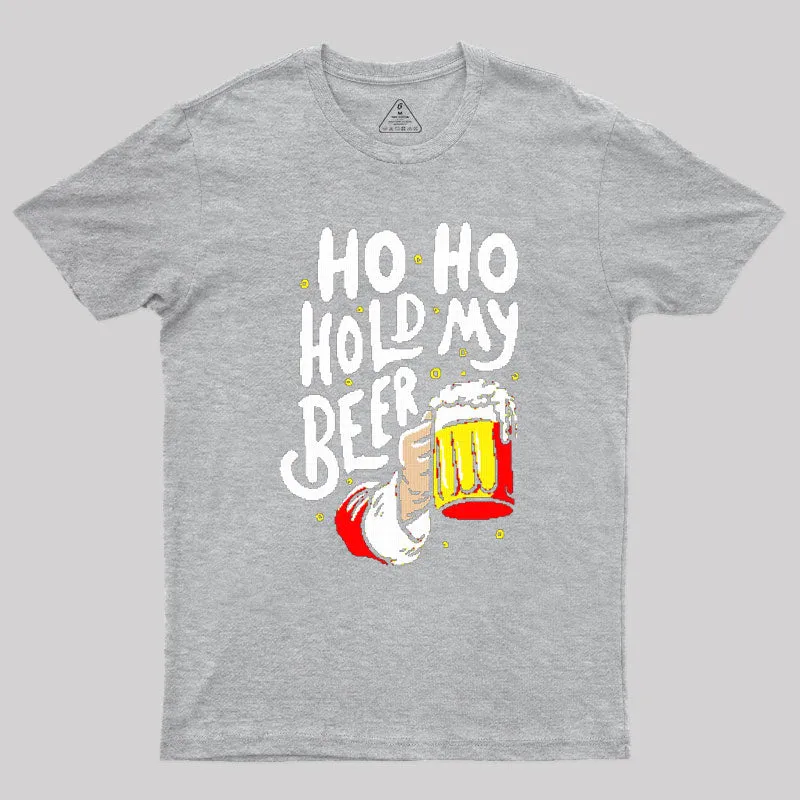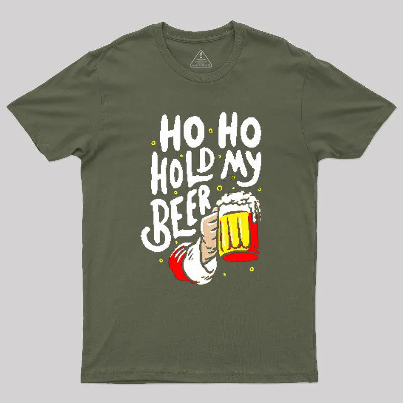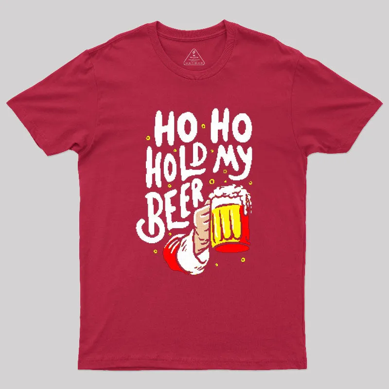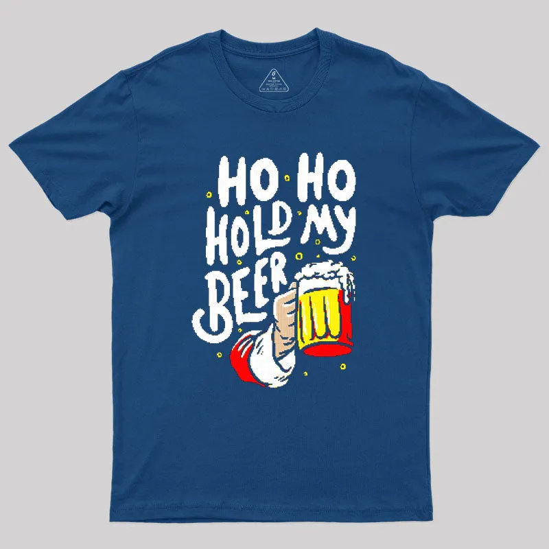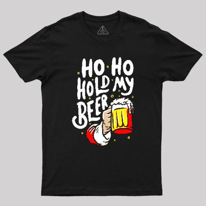 HO HO Hold My Beer Funny Santa Claus Ugly Sweater Geek T-Shirt