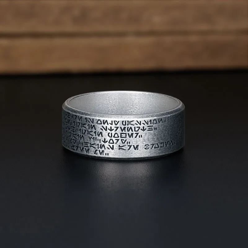 The Geek Silver Band Ring , crafted from 925 sterling silver and coated with oxide for an antique charm, is perfect for all genders.
