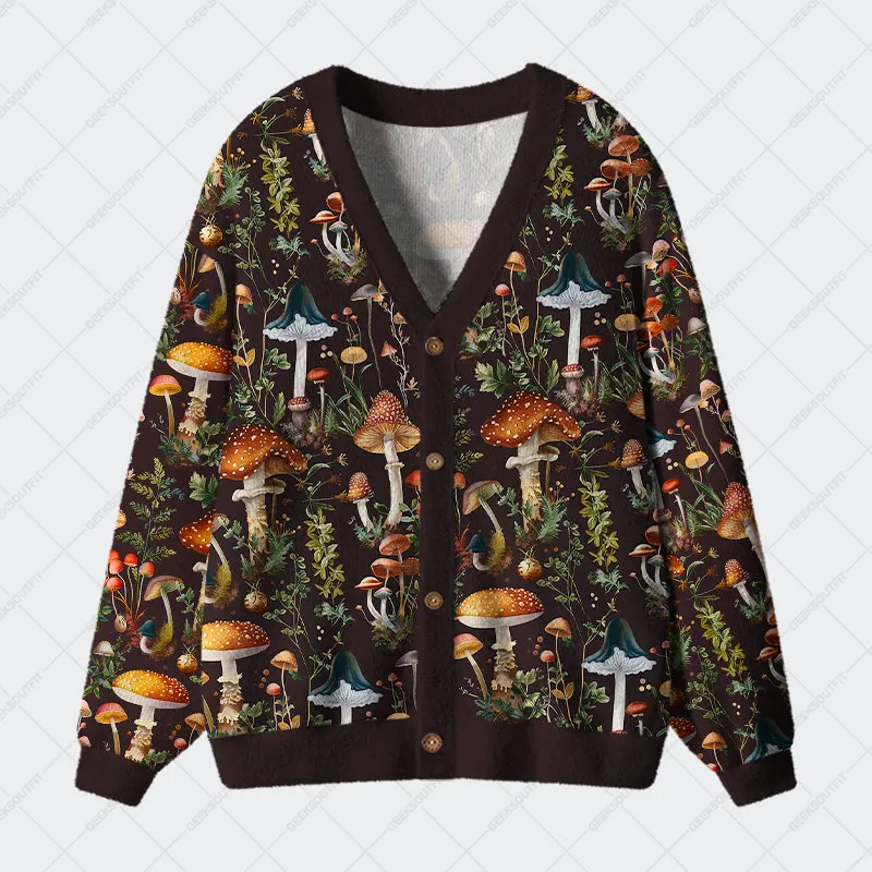 Mushroom Science Retro Geek Ugly Cardigan Sweaters