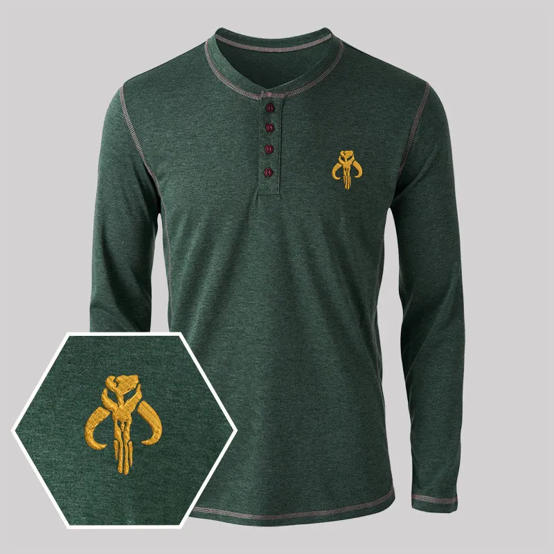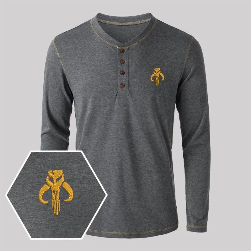 Mythosaur Embroidered Long Sleeve Henley Shirts