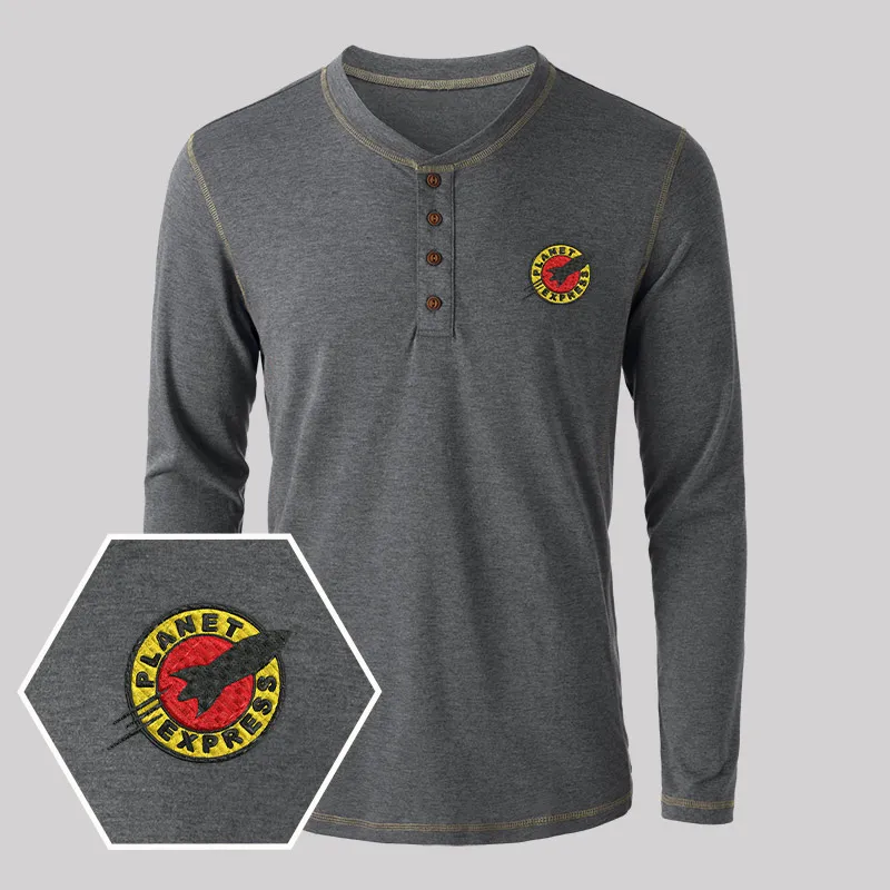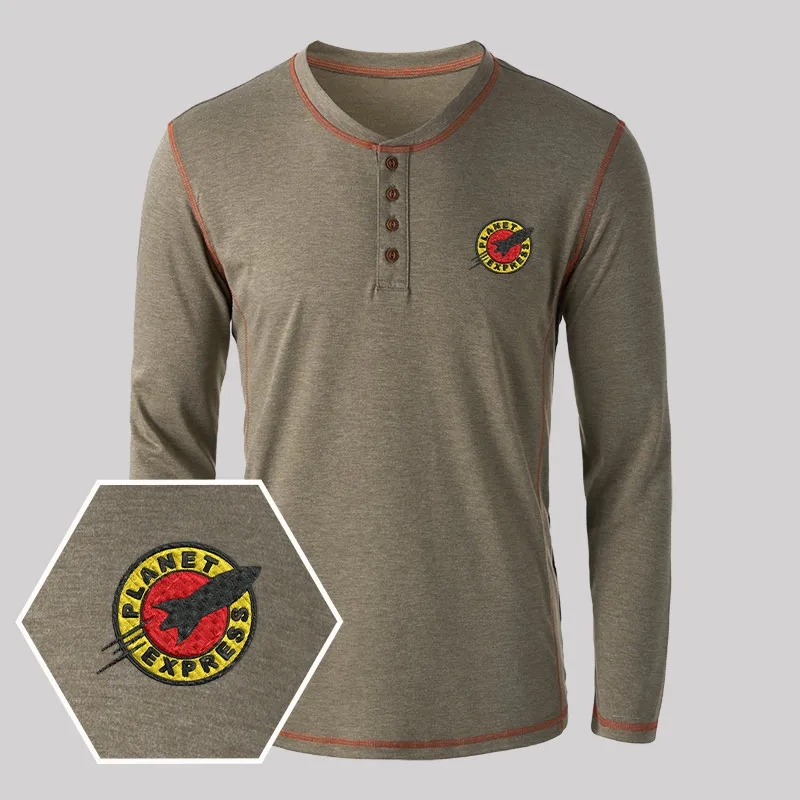 Planet Express Embroidered Long Sleeve Henley Shirts
