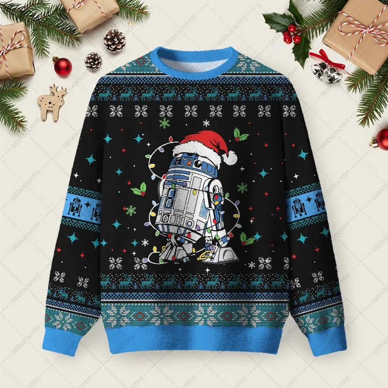 Robot Christmas Ugly Christmas Fuzzy Fleece Sweatshirt