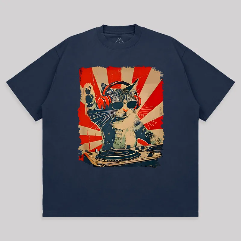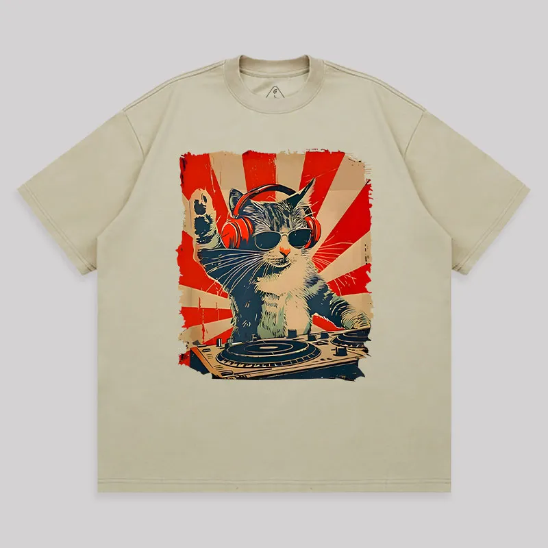 Rock Music Cat Unisex Oversized T-shirt