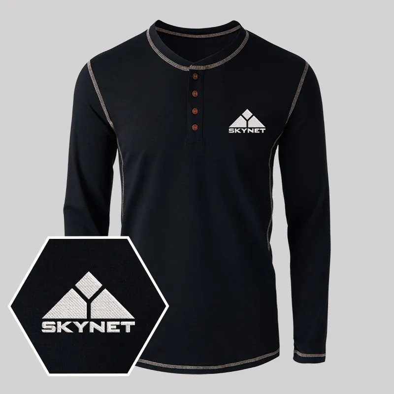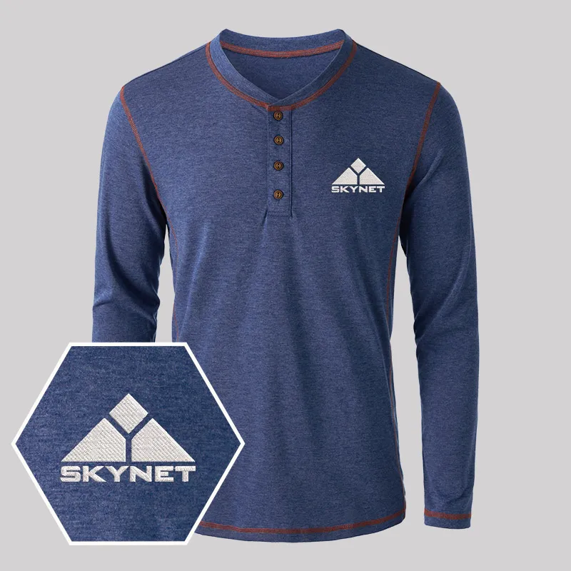 Skynet Embroidered Long Sleeve Henley Shirts