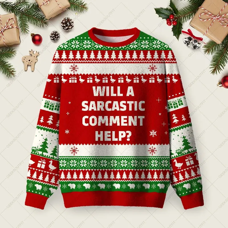 Will a Sarcastic Comment Help Red Ugly Christmas Fuzzy Fleece Sweatshirt